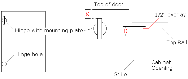 from the top of the hinge plate to the top of the door (X